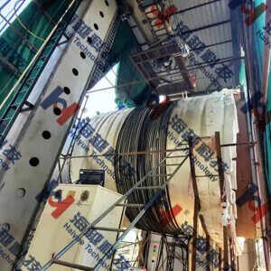青島海越歷時近1年,經(jīng)過大量模擬測試和不同加熱規(guī)范參數(shù)調(diào)整,掌握了電磁感應(yīng)加熱在大型厚壁容器上的焊后熱處理技術(shù)。