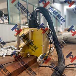 快速加熱感應器采用非接觸式加熱方式,可實現工件邊旋轉邊加熱。配置紅外測溫儀實時測量工件溫度。快速加熱感應器可以在工件3點-6點或6點-9點位置加熱。加熱后焊接,邊加熱邊焊接。 也可以用于縱縫自動焊。