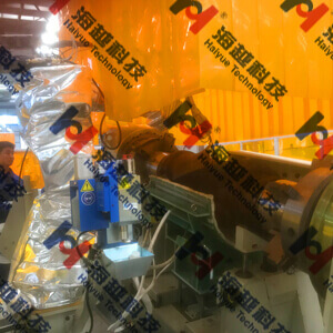 用于客戶現場的軸類表面堆焊保溫。軸表面進行加熱保溫,焊接部位的溫度在250℃左右。筒體材質:ZG300-600。采用圓弧感應器從軸底部進行加熱維溫。